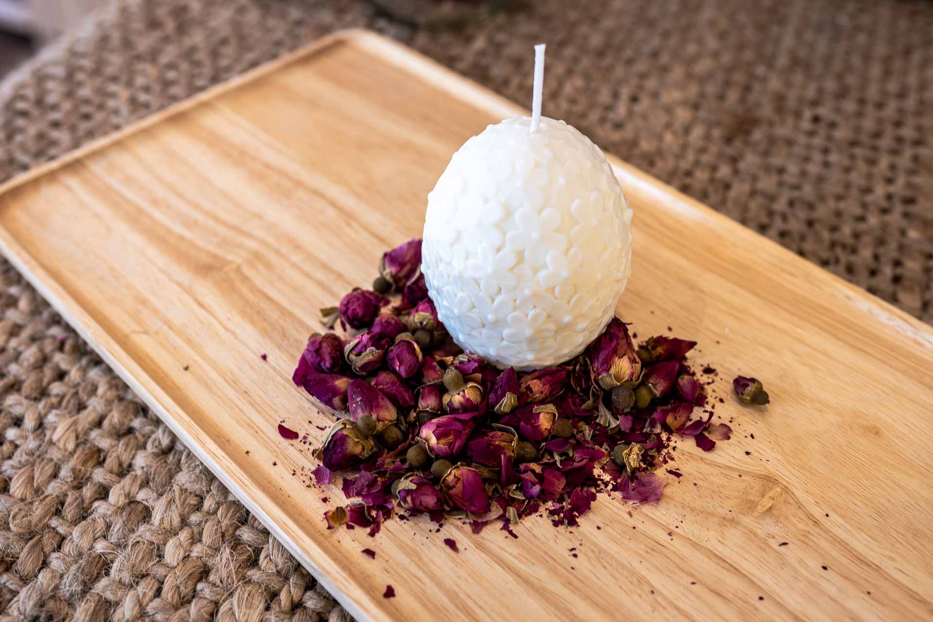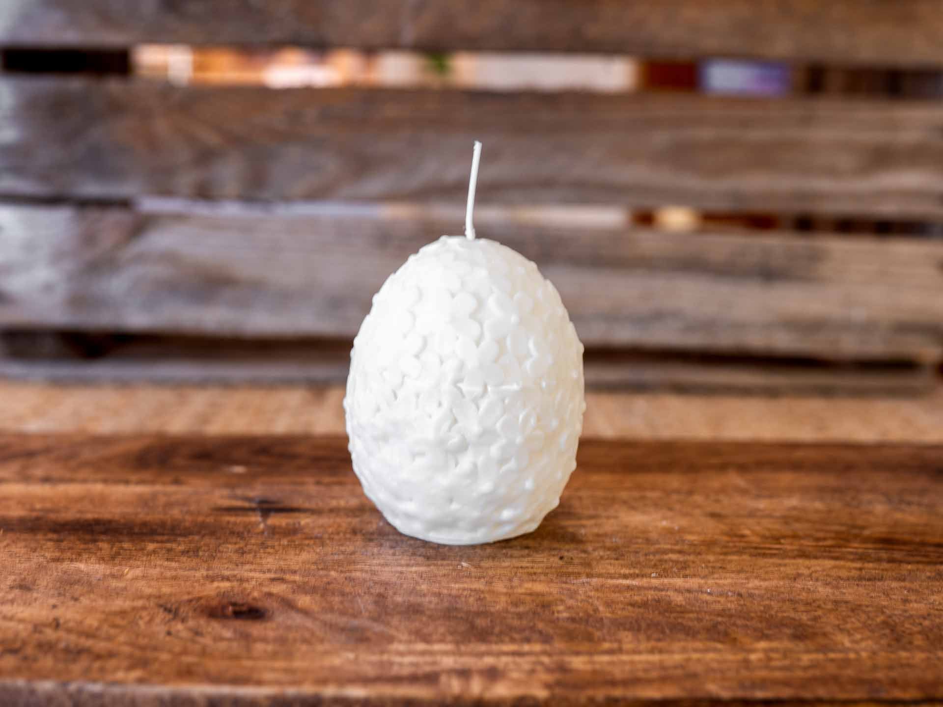 Bringe einen Hauch von Eleganz und Natur in Dein Zuhause mit unserer bezaubernden Kerze "Ei". Diese handgefertigte Kerze aus 100% Rapswachs besticht durch ihr einzigartiges Design in Form eines Eies und einem filigranen Blumenmuster, das sich harmonisch um die Kerze windet.