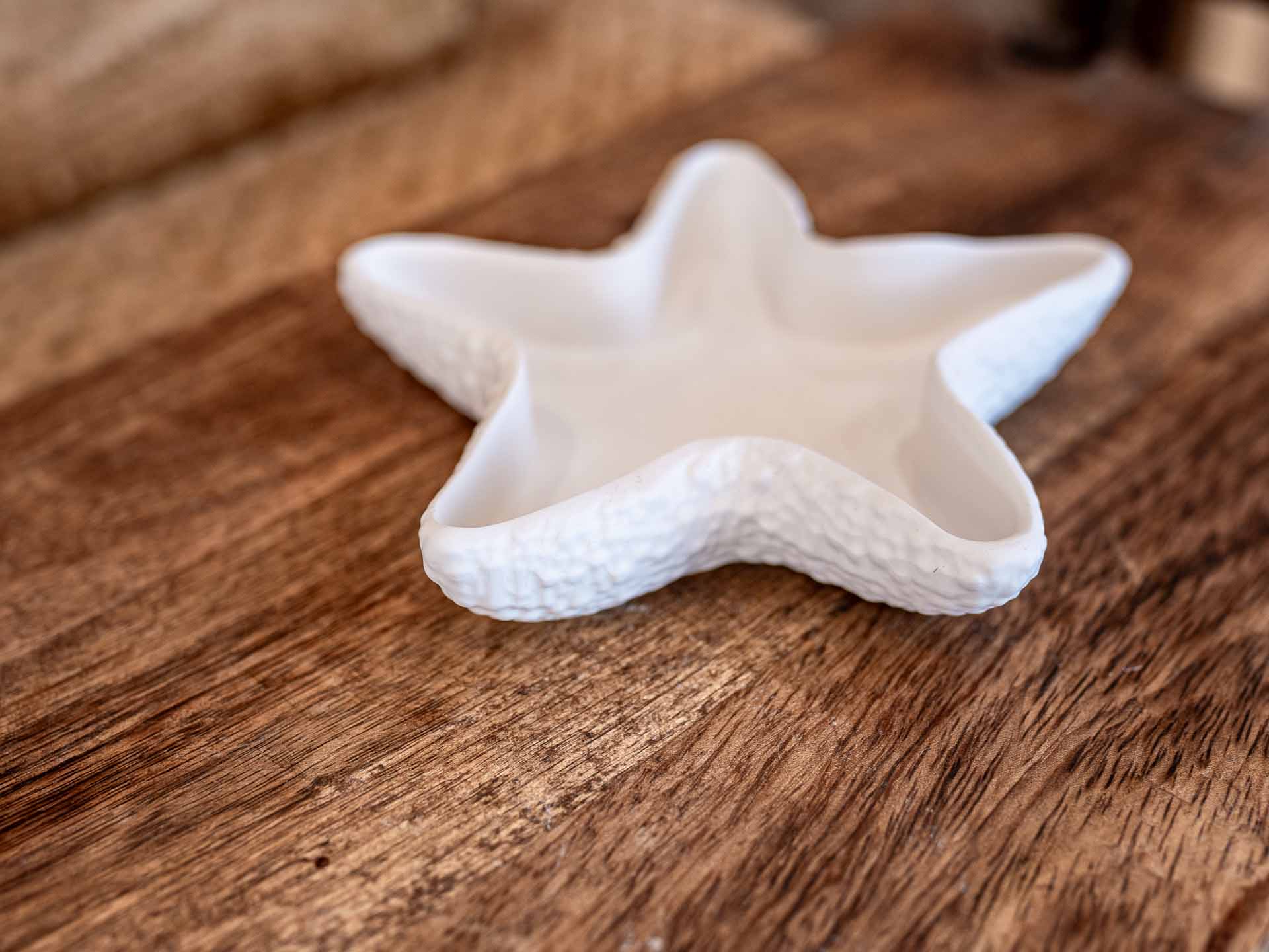 Bringen Sie maritimes Flair in Ihr Zuhause mit dieser bezaubernden sternförmigen Schale aus Zellan. Die Schale besticht durch ihr einzigartiges Design und die hochwertige Verarbeitung, die sie zu einem echten Blickfang in jeder Einrichtung macht. Perfekt geeignet für die stilvolle Präsentation von Snacks, Schmuck oder anderen kleinen Gegenständen.